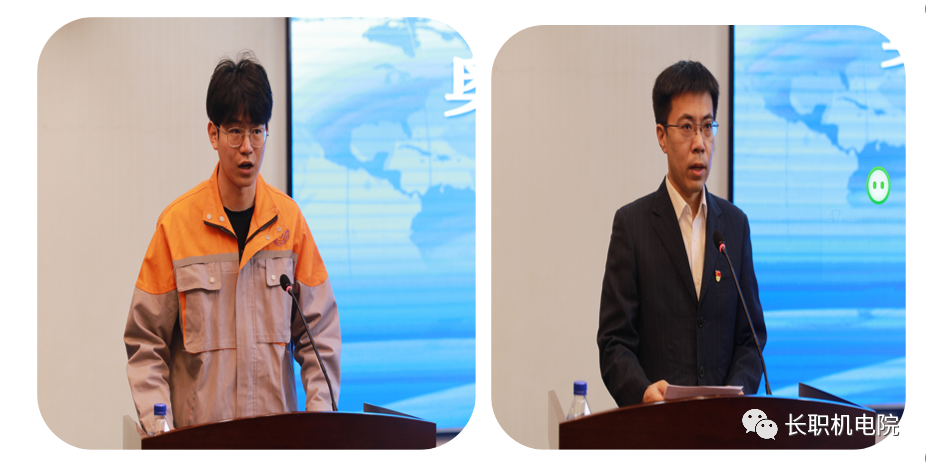 奥迪一汽工匠学徒制班学员代表王天实、yl6776永利集团教师代表吕国策分别代表学员和教师作了表态发言,立志以“起跑即冲刺”的姿态,踔厉奋进、笃行不怠,争取以优异成绩向学校和企业汇报。