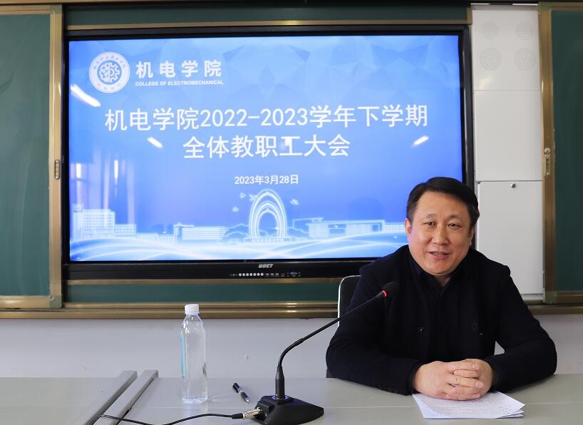3月28日下午,yl6776永利集团召开2022-2023学年下学期全体教职工大会,会议由唐宁书记主持,共包括两部分内容,其一,由唐宁书记宣读学院科级、系主任、专业主任任命文件;其二,由胡友波院长对班子和各行政科室分工进行了说明,并对全体教职工从常规教学、技能大赛、双高建设、校企合作、学管、科研、安全、宣传、国际交流、社会服务与培训等十个维度作了主旨发言。