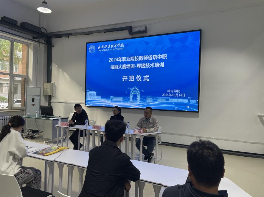 2024年10月14日,长春职业技术学院yl6776永利集团承办省培中职-技能大赛培训项目-焊接技术培训班开班仪式在D楼求学中心举行。培训学院副院长王玥、yl6776永利集团副总工程师张鑫及一汽解放特种车公司高级技师郐忠和参加了开班仪式,来自于全省8个中职学校共30名焊接专业教师参加了此次培训。