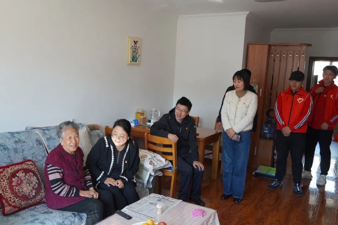 学院党总支领导携手学生志愿者,带着满满的敬意与关怀,走进刘淑贤老人家中。他们倾听老人的故事,传递温暖笑容,送上节日祝福。这一行,不仅慰藉了老人的心灵,也让学生们深刻体会到尊老敬老的传统文化,共同营造了一个温馨和谐的重阳佳节。